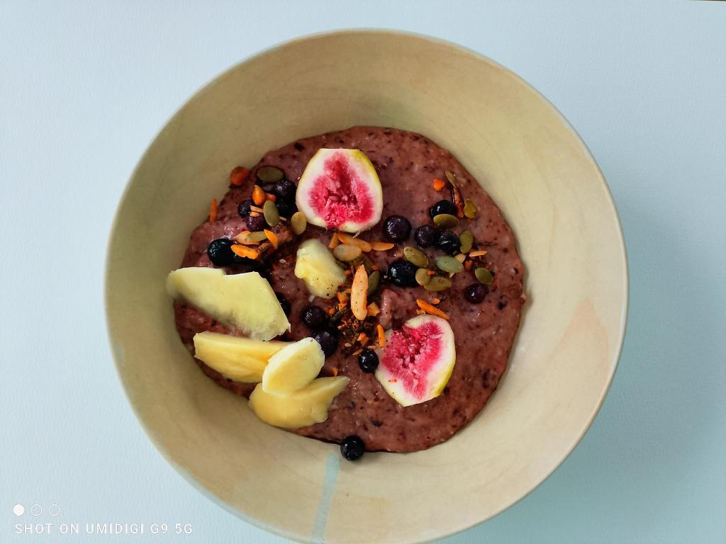 Ce bol de smoothie est idéal pour la santé tant il regorge de nutriments anti-âge. Un grand choix de fruits congelés permet de le préparer facilement. Plusieurs options permettent de choisir la garniture de son choix incluant des petits fruits frais de saison, des graines de lin, graines de chanvre décortiquées, baies de goji, graines de courge, éclats de cacao, un gruau granola (Groatnola).