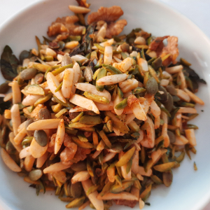 - Retirer du feu et verser sur le mélange de noix, puis ajouter le paprika et le mélange d’épices savoureux 2.0 . Mélanger et servir.