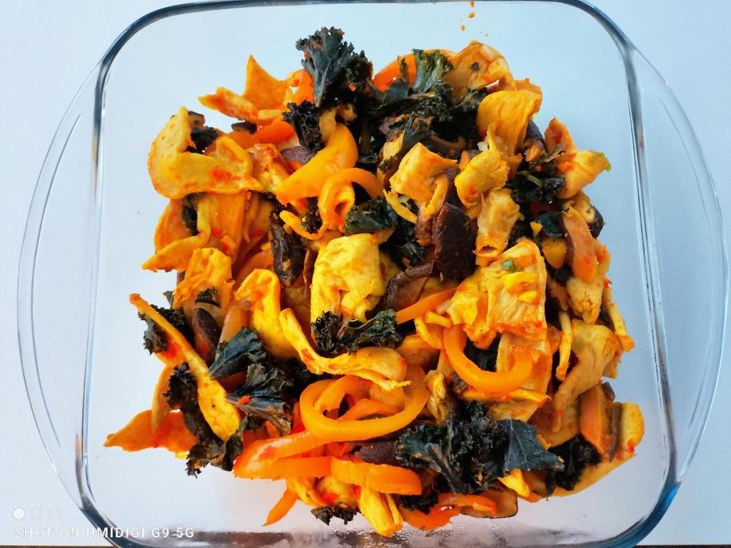 - 1 gros poivron de la couleur de son choix, coeur et graines enlevées, et finement tranché en lamelles